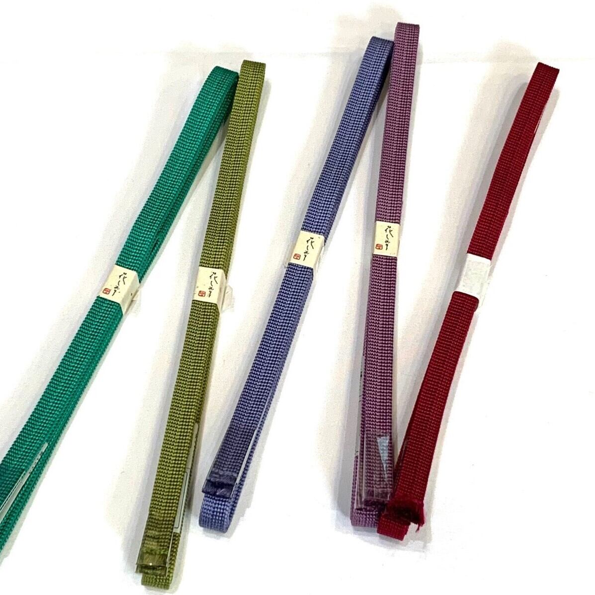●コーディネートのポイントになるカラフルな帯締め。帯留めを使うにはこのサイズが必要です。